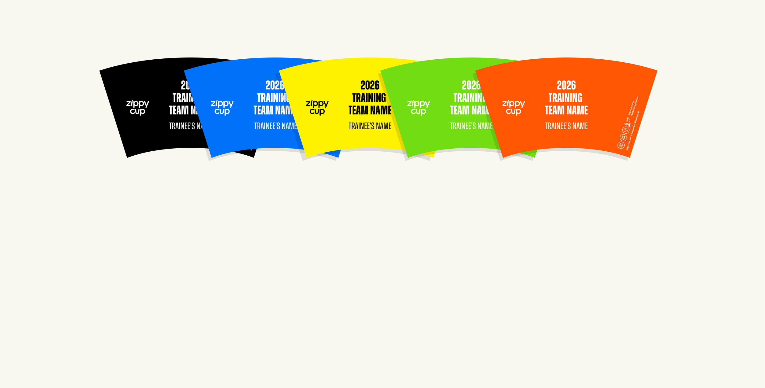 Pick a cup color that matches your team palette. Five options available, with custom colors for larger orders.